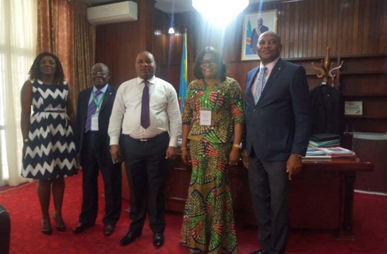 Kinshasa-République Démocratique du Congo, 15 janvier 2020- En séjour dans la capitale congolaise dans le cadre de l’atelier de planification des activités 2020 du Secrétariat Exécutif et du 10ème atelier de concertation des Coordinations Nationales COMIFAC, le Secrétaire Exécutif de la COMIFAC Monsieur Raymond Ndomba Ngoye accompagné par le Coordonnateur National COMIFAC de la RDC Monsieur Luc Atundu, du Cameroun Mme Victoire Eheth par ailleurs représentante du Président en exercice de la COMIFAC le Ministre Jules Doret Ndongo et l’experte communication Madame Louisette Sylvie Yebel-Founga, a été reçu par le Ministre de l’Environnement et du Développement Durable, Monsieur Claude Nyamugabo Bazibuhe.