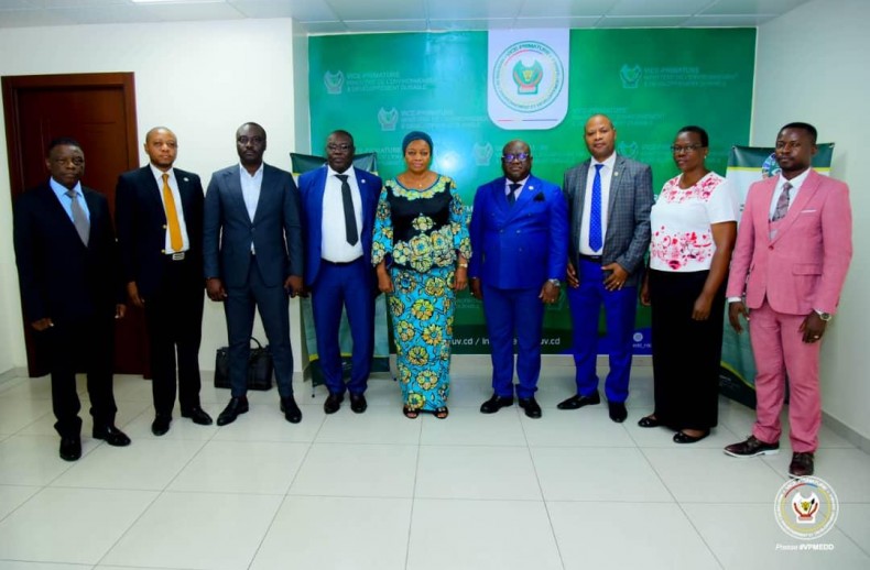 Kinshasa, République Démocratique du Congo, 25 mars 2022- Une délégation de la COMIFAC sous la conduite du Secrétaire exécutif Hervé Martial Maidou a été réçue en audience par la Vice Première Ministre, Ministre de l’ Environnement et du Developpement Durable Eve Bazaiba Masudi. La veille de cette rencontre, le Secrétaire exécutif de la COMIFAC a eu une séance de travail avec l’équipe de la coordination nationale COMIFAC de RDC.